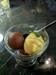 We wrapped up our meal with a classic Indian dessert, Gulab Jamun, served warm and soaked in syrup. Soft, spongy, and irresistibly sweet, it was the perfect finale to a beautiful evening.
