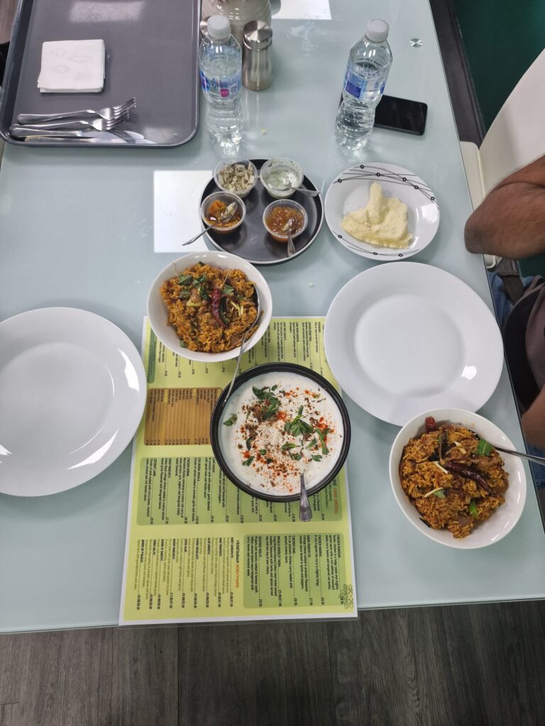 Then came the star of the night — Hyderabadi Biryani, lovingly prepared by Sameer himself. The first spoonful was enough to transport me back home. Each grain of rice was perfectly cooked, fragrant with saffron, and layered with tender, juicy pieces of chicken that had soaked in the rich Hyderabadi spices. It had just the right balance of heat and aroma — not overpowering, but bold enough to make you want another bite.